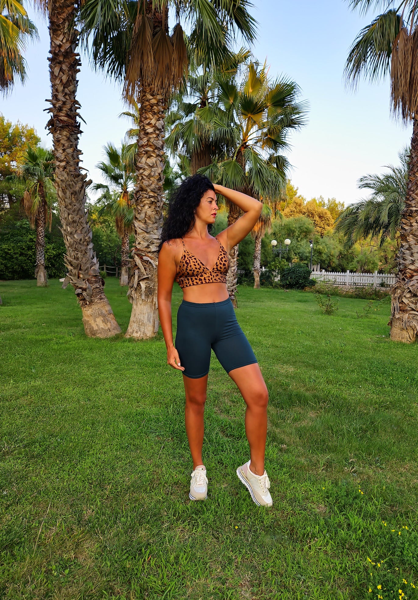 Kolarki prążkowane bawełniane MORSKA ZIELEŃ z wysokim pasem LEGGINSY 1/2 sportowe