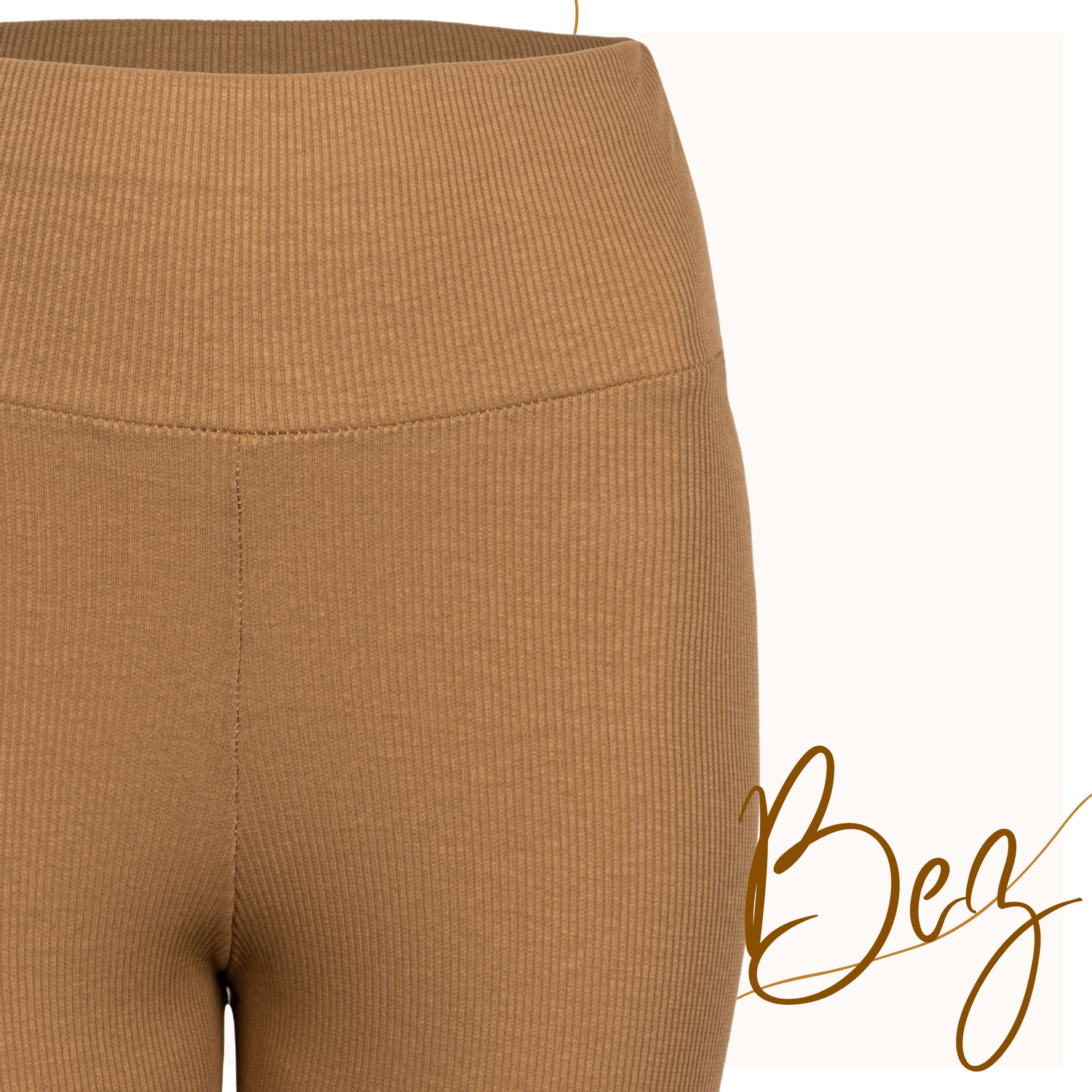 Kolarki prążkowane bawełniane BEŻOWE z wysokim pasem LEGGINSY 1/2 sportowe