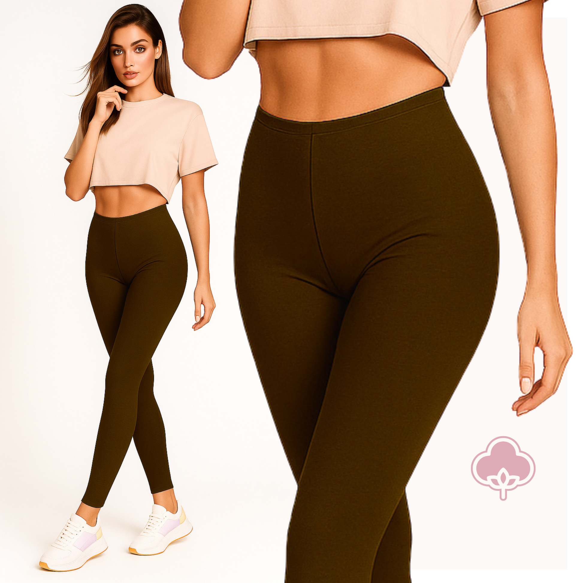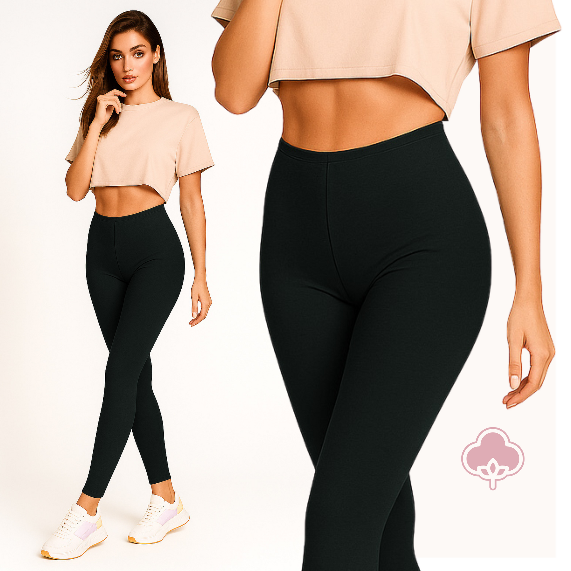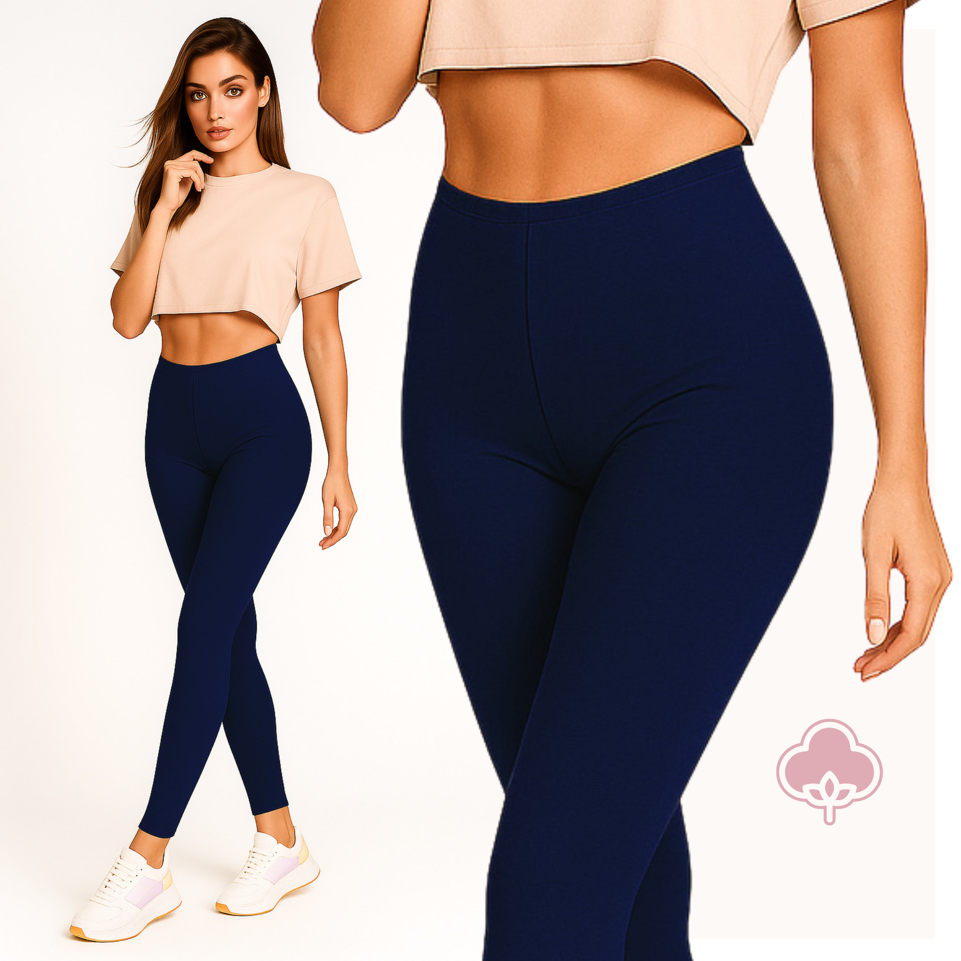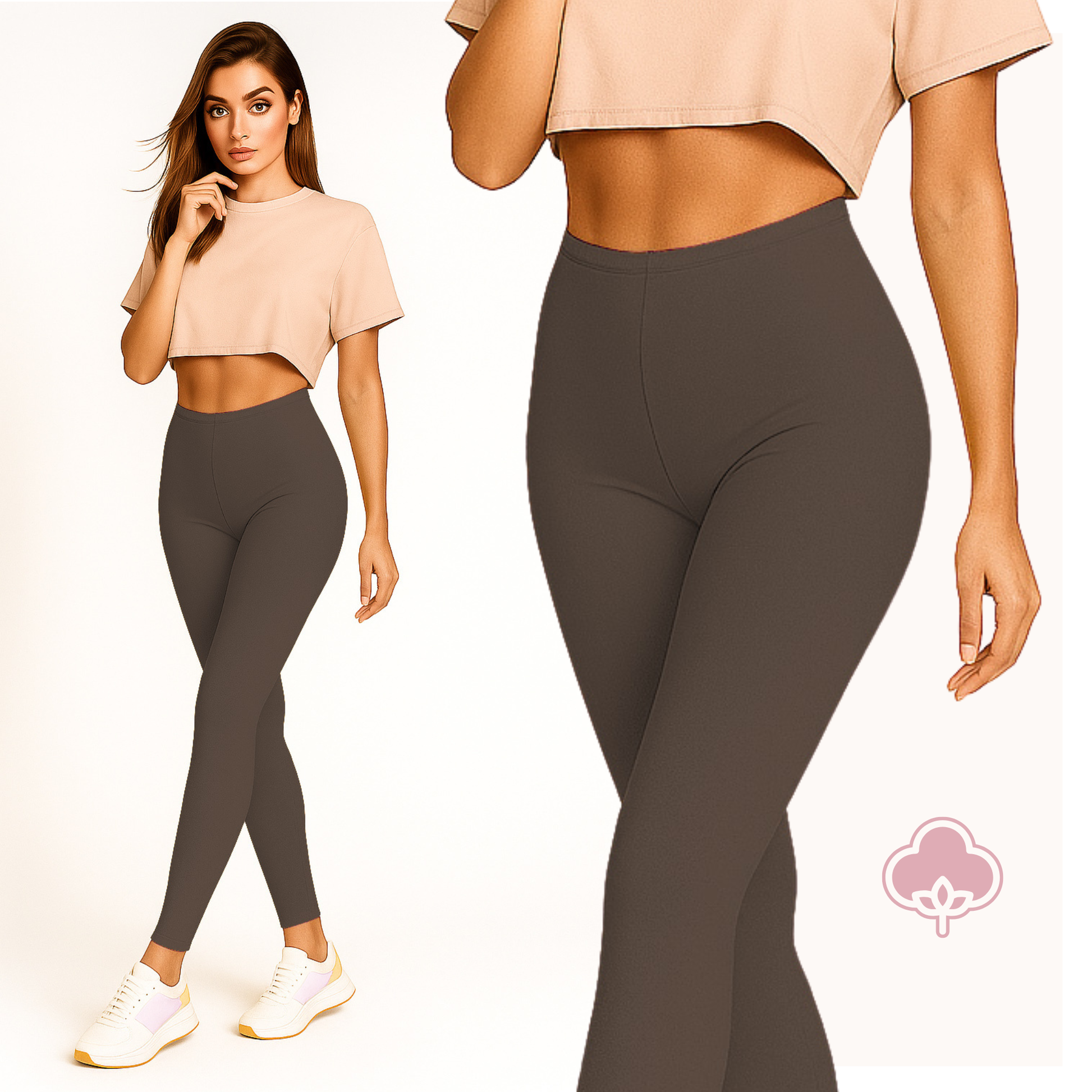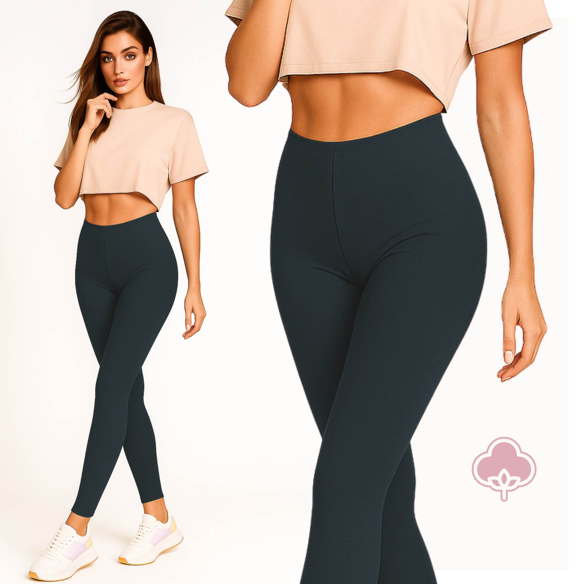 Cotton leggings in classic colors , made of high-quality fabric, thanks to which they are pleasant to the touch and perfectly fit the figure . Made of natural cotton with an admixture of elastane, which makes them skin-friendly.