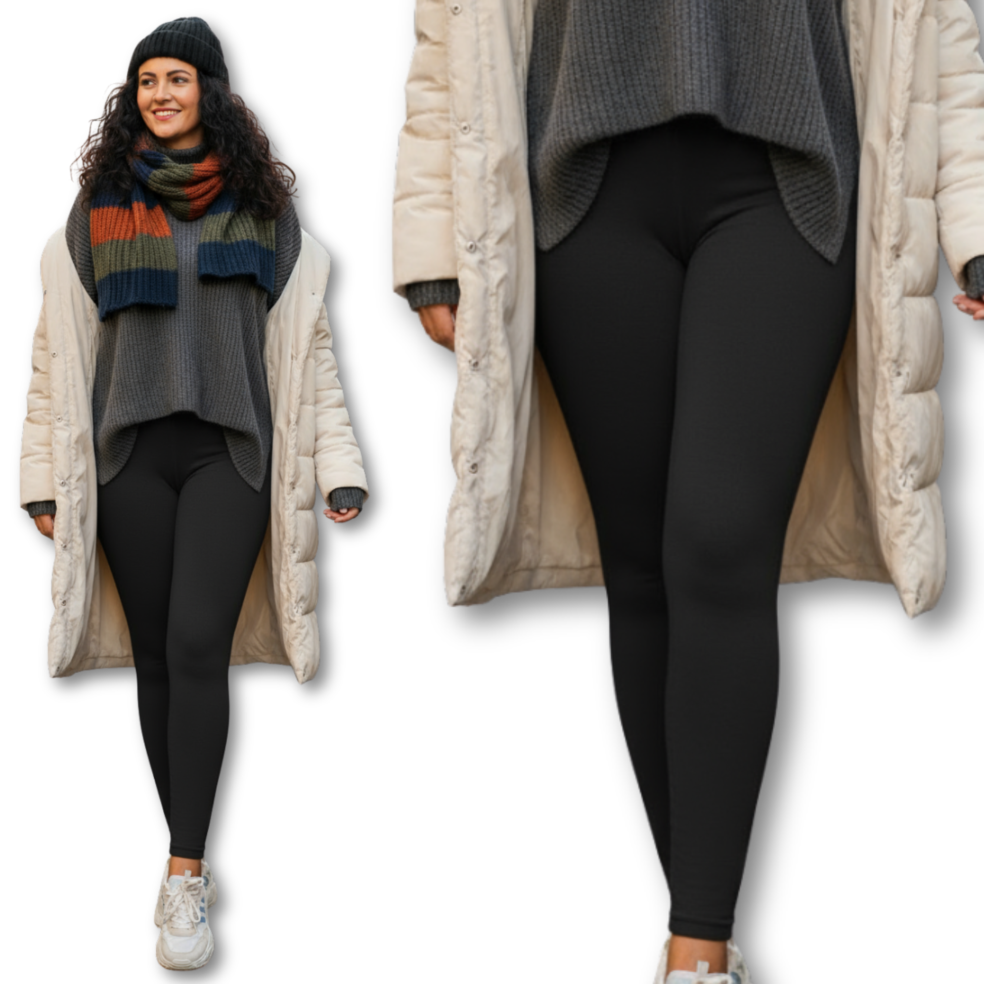 ❄️Materiał, z jakiego są wykonane, to wysokiej jakości bawełna, która doskonale oddycha i przeciwdziała poceniu się, co jest ważne podczas intensywnych aktywności w chłodniejszych warunkach. Wewnętrzna strona legginsów jest ocieplana, co sprawia, że są one niezwykle przyjemne w noszeniu i idealne do noszenia pod spodnie lub sukienkę podczas mroźnych dni.
