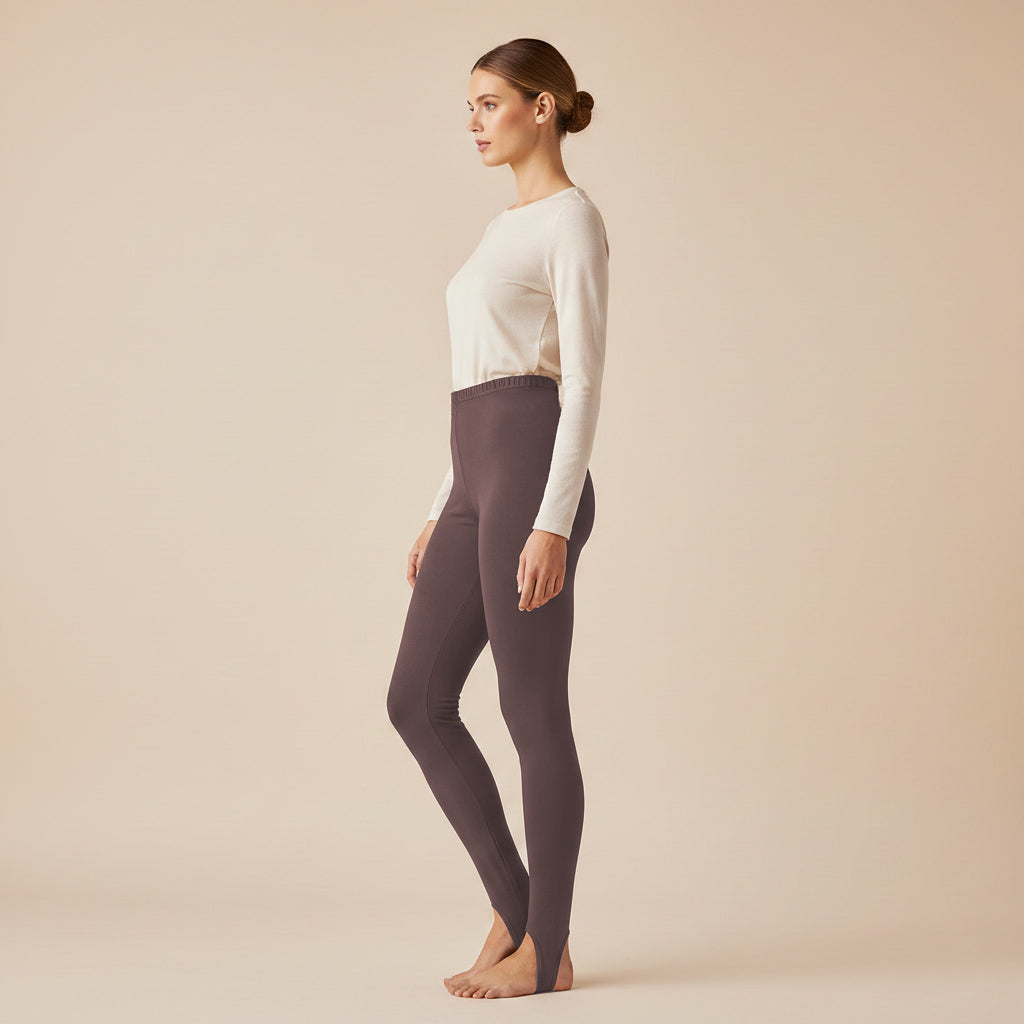 • Idealne dopasowanie (Zapiętka): Dzięki elastycznej zapiętce pod stopę, legginsy zawsze zostają na swoim miejscu. Koniec z rolowaniem się materiału wewnątrz kozaków czy botków!